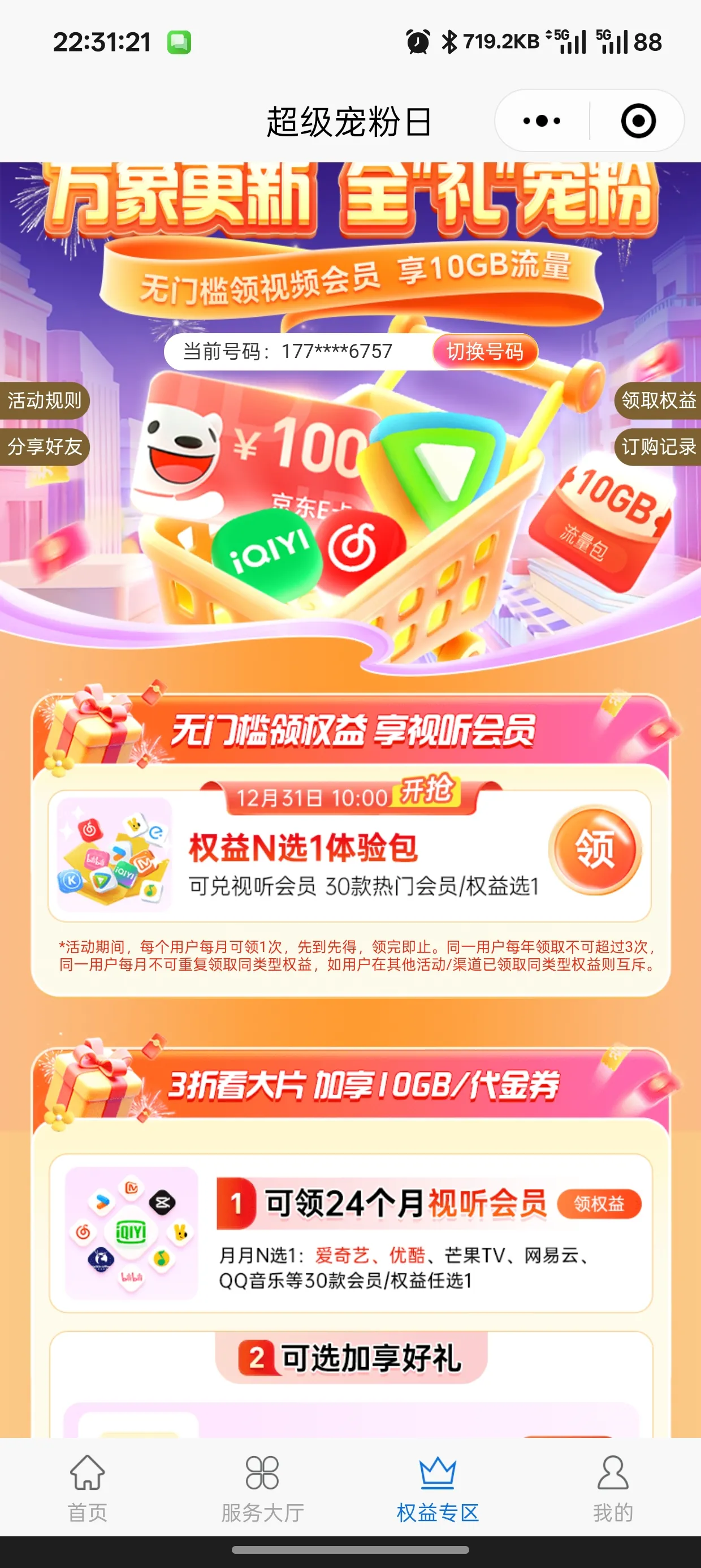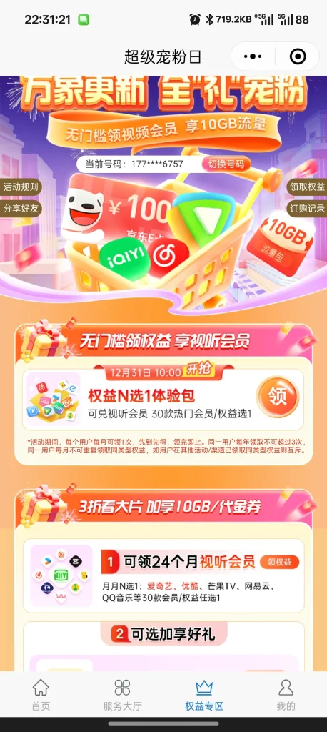 调研反馈领流量: https://dev.coc.10086.cn/coc/web6/ageFeedbackV2Yk/?pageId=1942831183737307136&channelId=P00000128719 欢乐抽奖页面: https://dev.coc.10086.cn/coc/web6/fanleDraw/?pageId=2001114227726311424 官方权益通道一: https://wx.10086.cn/qwhdhub/leadin/1025...062458?A_C_CODE=Ui7TNJZGxP 官方权益通道二: https://wx.10086.cn/qwhdhub/leadin/1025020810?A_C_CODE=1DJicGPBGv 官方权益通道三: https://wx.10086.cn/qwhdhub/leadin/1025062454?A_C_CODE=TE7X5lf1UW展开收起