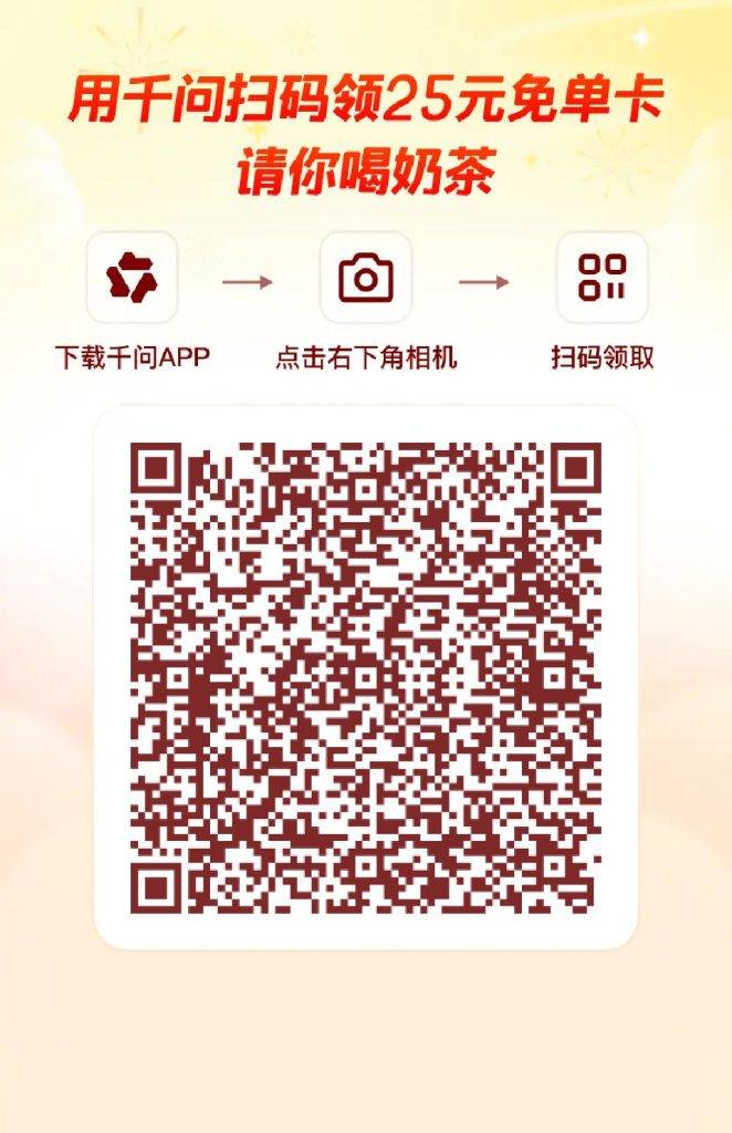 阿里ai抢用户,薅羊毛啊,免费喝奶茶🧋买超市的东西都可以 1️⃣下载千问app 2️⃣扫图一的码,给25元红包,然后 直接说买啥 就弹出来啦。 可以买超市的东西,买水,奶茶也不花钱 下单前记得确认收货地址哦