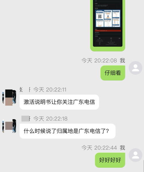 我说其他家渠道“全国版广东星”都下架,为啥就他还有?搞了半天是狸猫换太子! —— 简单说就是一样的自费(29长期185G),渠道把“广东星”当“贵州星”卖,体现在以下两点: 1. 套餐名“某俊卡”,之前本就是广东星,现在名都不改,直接发贵州星; 2. 资料里明晃晃还写着广东电信,但就是不认,说那是激活图上印的。哈哈哈哈!!! 现在为了免责,同时也是应运营商的要求,归属标随机已经是惯例。可以理解,但上面两点属实不该! 卡友经常问归属地,我都回随机,就算我知道也只能这样说大概率x省(坑怕了)。 总结: 坏消息:贵州电信 好消息:依旧是29长期185G,需要每年参加充50送120 我的建议: 如果近期缺流量,可以用。因为15号竞合就开始了,到时候清一色80G。如果不急用流量,也不想受这鸟气,直接拒收,不激活。 不论选哪种,#爱吾卡卡 都发一个小虹包作为补偿。好在涉及的订单不多……