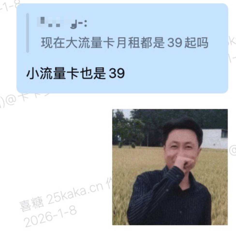不!没那么乐观,小流量卡也是 39(除了部分赢家省)……