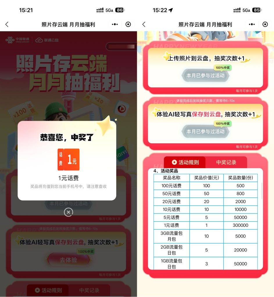微信打开活动>根据提示上传图片>有2次机会抽1~100亓话费或流量月包等奖励👉mp://pNU13lIeDufLHAo ———— 现在没啥水了,过两天再试试,老活动了